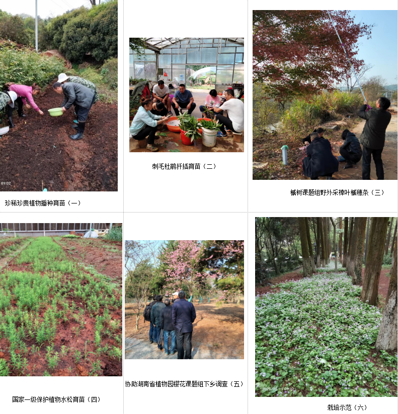 对外业务合作及交流,参与中国科学院2016年重点部署项目子课题(KFJ-3W-No1-132)“华中—湖南本土植物清查与保护”;协助湖南省植物园樱花课题组完成湖南省重点研发计划项目(2017NK2251)“樱花种质资源收集保存与新品种选育技术研究”; 与湘南学院化学与生物环境工程学院联合2018年发表论文《微波辅助下无患子果皮中总黄酮提取条件的优化》;与中南林业科技大学曹基武教授2019年联合研究美国冬青、美国金杉、丹霞含笑、中林含笑、恨天高等珍稀外来品种在郴州地区栽培适应性;参与湖南省2021年度重点研发计划“钟花樱桃新品种选育及繁育技术”项目。