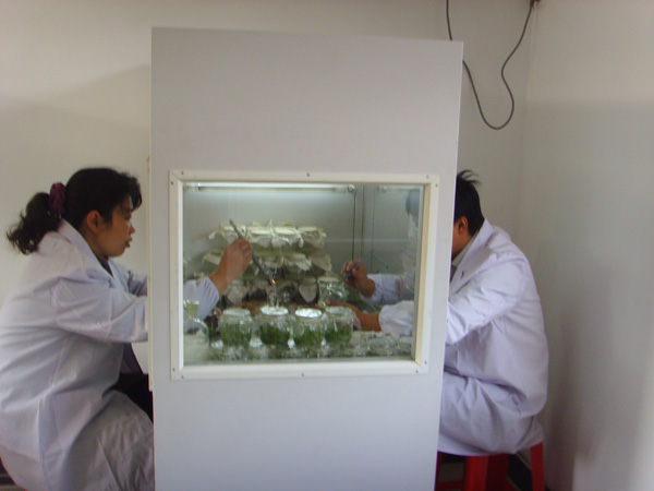 2000年4月,在郴州市科技局的大力扶持下,我园建起了一座小型的组培实验室。多年来,我园多方筹措资金,不断加大投入,先后投入资金150万元。目前我园已建成现代化组培实验楼378㎡,室外配套育苗基地5000㎡,年生产苗木能力达200万株。2007年12月,郴州市林木组培研发中心在我园成立。