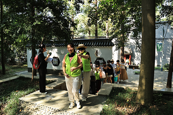 随后进行的“信任盲行”环节独具匠心。家长们率先戴上眼罩,在林间小径中开启一段宁静的“内观之旅”;孩子们随后接力体验,一路盲行至科研温室。当眼罩摘下的刹那,温室里生机勃勃的热带植物与方才秋日森林的静谧形成鲜明对比,引发阵阵惊叹。