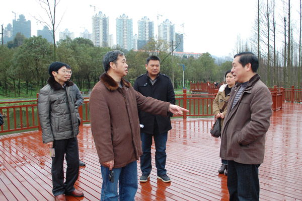 樊主任率调研组实地考查了我园一期工程建设情况和园区景观建设情况,并认真听取了我园负责人对有关植物园建设情况的汇报及2013年植物园专类园建设工作计划。樊主任首先对我园做出的努力给予了肯定,同时提出植物园要立足当前,着眼长远,加大宣传力度,落实人大决定,切实做好植物园保护发展工作,将植物园打造成森林郴州的科研科普、休闲旅游的一个亮点。