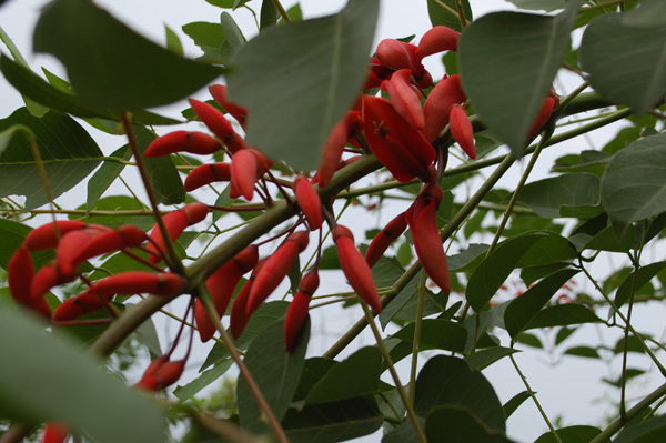 南岭植物园鸡冠刺桐引种开花了 来源: 南岭植物园 周志远 日期:2013-05-20 9:56:18 2012年4月,市绿城攻坚办组织从广州引种了一批鸡冠刺桐到郴州试种,分配了7株到南岭植物园试种。经过一年多时间,南岭植物园的鸡冠刺桐现已花繁叶茂,不过引种驯化繁育还需进一步研究探讨。鸡冠刺桐原产南美巴西,秘鲁及南亚菲律宾,印度尼西亚,我国华南地区也有栽培。研究表明,鸡冠刺桐适应性强,树形优美,树干苍劲古朴、花繁且艳丽,深红色,花期长,4-7月开花,具有较高的观赏价值。