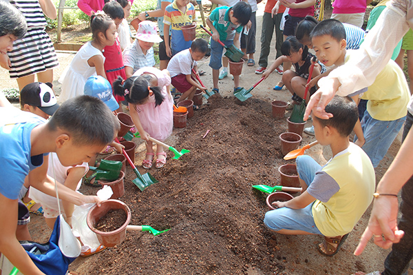 在我园花卉中心专职人员的指导下,同学们按照花卉种植步骤:给用铲子给花盆填土—用筷子取向日葵小苗—将小苗放在盆中间—再加土—压实—浇水,每一步都做得十分认真,有些同学种一盆不过瘾,接着又种了第二盆、第三盆。活动结束后,同学们捧着自己亲手种植的向日葵乐开了花。