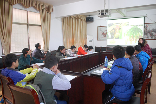 2015年2月15日上午,市六中十几位初二学生和部分家长,在我园专业人员的带领下,在园内开展了植物叶片认知的科普活动。