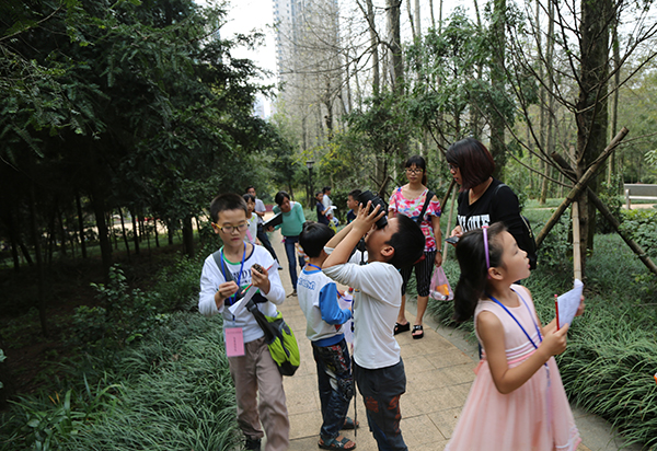 “秋天的植物会发生什么变化呢?”“挂在高高大树上面的果实是长在叶片的上面还是下面呢?”南岭植物园科普老师以提问的形式作为开场白,牢牢地吸引了同学们的注意力,随后同学们认真听取了植物叶片和果实的理论知识讲解,通过科普老师拿出的一些植物叶片和果实现场辨别其特征后,同学们便迫不及待的拿着望远镜到植物园里寻找任务表中的植物。