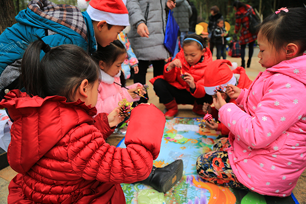 圣诞将至,南岭植物园唱响了一曲悦耳的“铃儿响叮当”,12月19日。南岭植物园开展了“DIY迷你圣诞树”为主题的科普活动,市三完小2班学生在学习马尾松、柔毛油杉果球植物知识的同时,现场利用水彩颜料和一些圣诞装饰品给马尾松、柔毛油杉的果球穿上了漂亮的衣服,活动有效结合圣诞主题普及孩子们的植物理论知识,增强了孩子们的创造力以及对大自然的热爱之情。