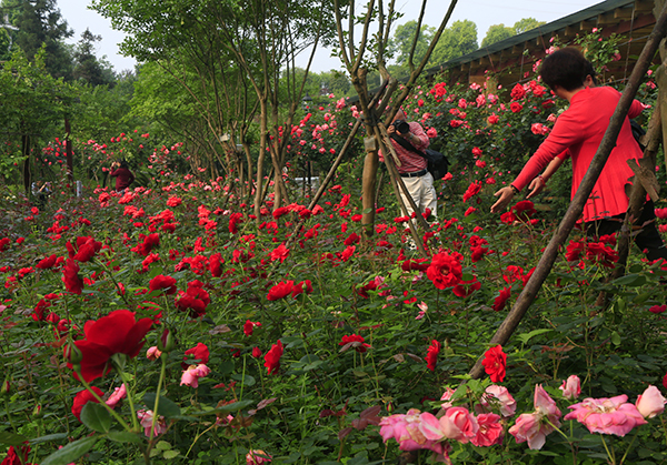 春雨过后,南岭植物园月季专类园内的月季正踏着春的旋律,优美绽放。
