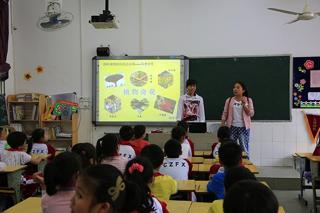 5月14-21日为全国科技活动周,南岭植物园的科普工作人员分别来到我市三完小和附小开展植物科普讲堂活动,讲座主题为“植物奇观”,向同学们介绍了一些生活中奇特的植物知识。