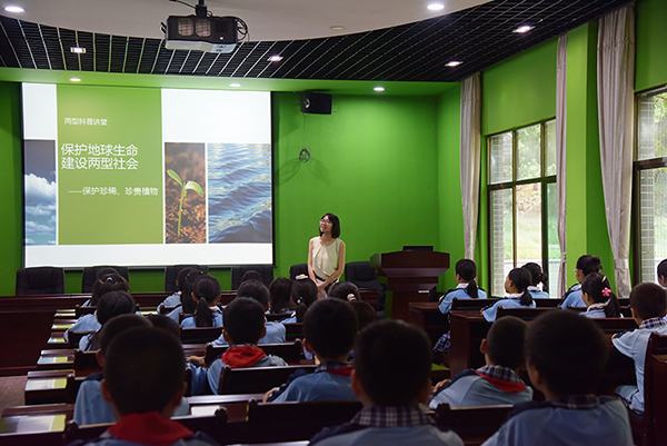 9月20日下午,以全国科普日为契机,湖南省“两型宣教基地”南岭植物园和郴州市第42完小联合举办了一期以“保护地球生命,建设两型社会——保护珍稀、珍贵植物”为主题的两型科普讲堂。