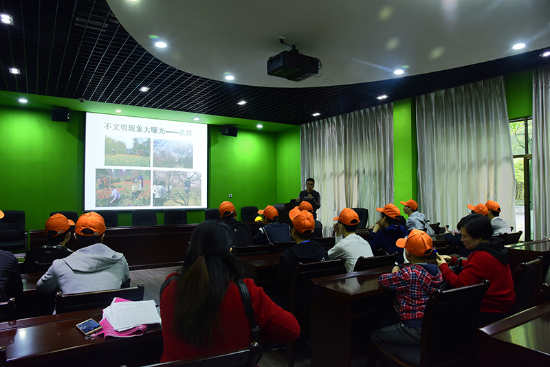 植物园专技人员首先给同学们进了简短的岗前培训,然后所有同学都配带了志愿服务徽章、南岭植物园志愿服务帽和胸牌,分散到园内各花展区和专类园区对不文明行为进行劝导。他们的行为感染了众多游客,好些家长和孩子也纷纷自觉加入到了我们的志愿服务队伍。