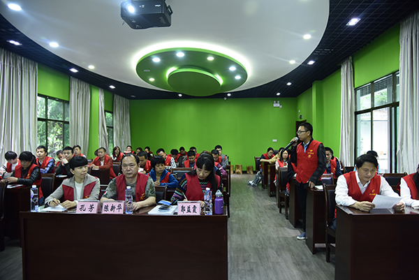 本次道德讲堂流程有问自己、唱歌曲、学模范、诵经典、谈感悟、志愿者培训六个环节。