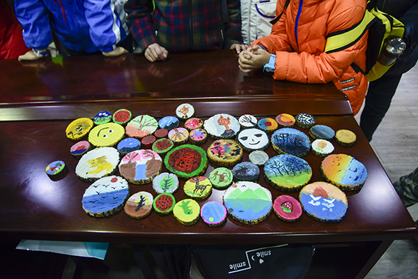 在最后的树木年轮创意画环节,同学们拿着植物园精心为大家准备的木片,充分发挥各自的想象力和创造力,制作出了一幅幅精美的年轮创意作品。
