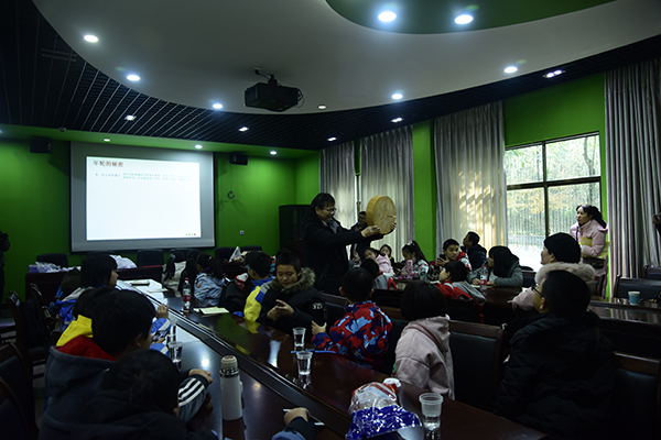 第二个环节,南岭植物园科普老师朱老师通过PPT深入浅出地给大家普及了有关树木年轮中包含的大量信息,同时通过比较典型的实木标本,以互动形式,进一步加深同学们对树木年轮信息的解读。