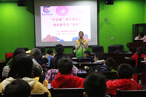 2021年3月20日上午,南岭植物园与郴州市图书馆联合举办活动“举国同庆·建党100周年”——节气之旅·春分;本次活动组织了25组亲子家庭,由郴州市图书馆准备亲子悦读绘本、手工材料包,南岭植物园科普老师廖祯妮主持讲解。活动共有:故事分享、手工制作、药用植物认知三个环节。