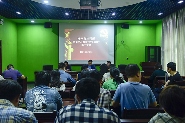 3月29日,郴州市林业科学研究所党支部围绕“学史明理”主题组织开展党史学习教育第一次专题学习,市林业局党组成员、副局长彭清忠同志到会指导并上党课,全所干部职工参加。