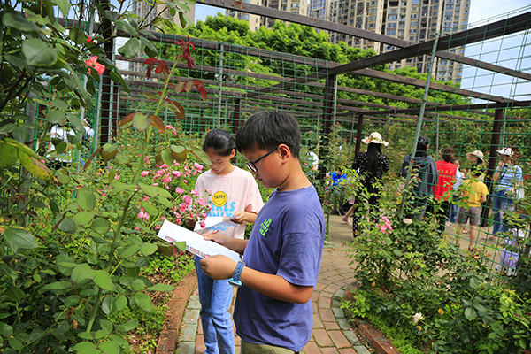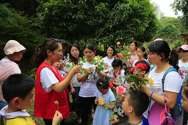 活动中,植物园科普老师首先给亲子家庭讲解了月季的基本特征,教大家如何区别月季与玫瑰,这是广大市民容易混淆的两种植物。然后利用趣味答题——月季品种连连看的形式,让孩子们在植物园月季园通过眼观、手测、鼻闻等多种方式,将6个品种的月季与其正确的特征描进行连线,并记住它们具体的地块位置。最后孩子们还剪下了自己喜欢的月季枝条,在科普老师的指导下,进行现场扦插并带回家进行养护。后期植物园科普老师将在科普活动群随时为大家答疑,全程提供月季养护专业指导,希望有所参加活动的孩子都能成为月季养护小能手。
