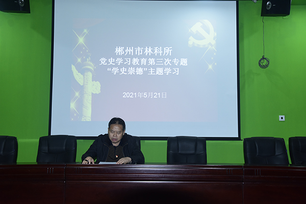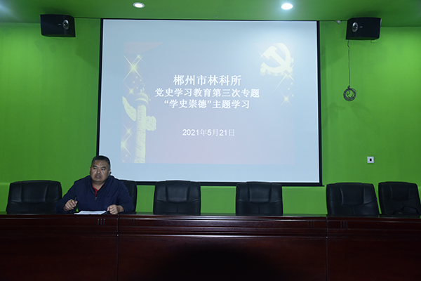 5月21日,郴州市林业科学研究所党支部围绕“学史崇德”主题组织开展党史学习教育第三次专题学习,全所干部职工参加。