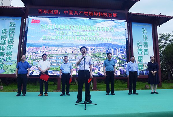 活动开始,市政协副主席、市科技局局长潘执坤讲话并宣布2021年郴州科技活动周开幕。