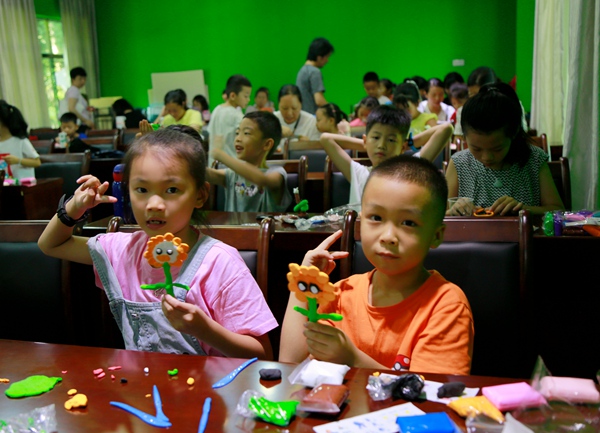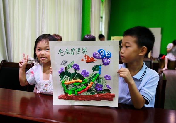 做手工应该是孩子的最爱,活动的最后一个环节,要求每位孩子利用手中的超轻黏土,制作出一份属于自己的作品。孩子们脑洞大开,作品千姿百态:蝴蝶吸食花密、毛毛虫在绿叶上爬行,毛毛虫吃萝卜、盛开的荷花、热闹的荷塘、毛毛虫的世界......