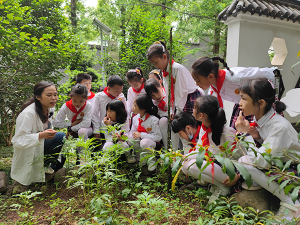 在“生物多样性调查——认知常见中药材”中,骆仙小学同学走进植物园药园,在植物园科普老师的指引下,第一次亲密接触了“神秘”的中药材,并通过看、摸、闻等方式学习了解了见中药材叶、花、果的形状和气味等,活动让同学们对中国的传统中药文化知识有了进一步的感悟与认知。