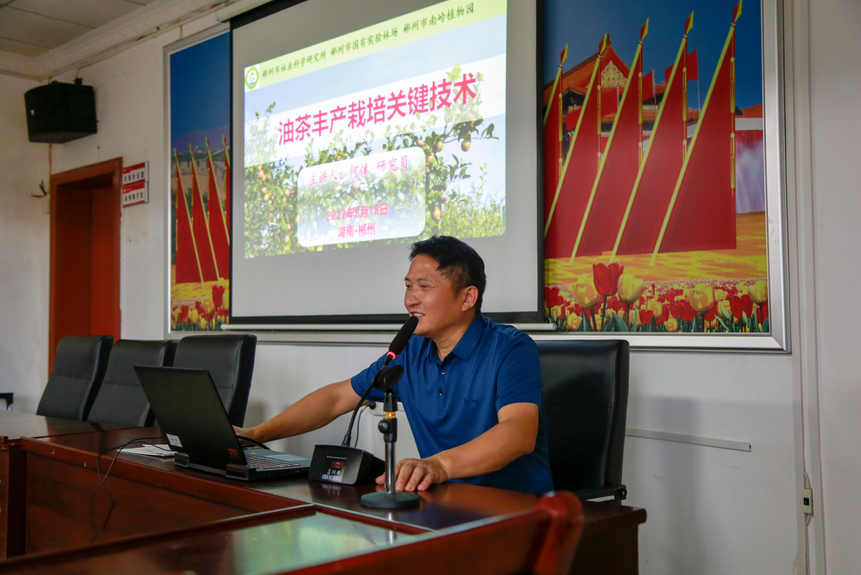 此次培训主要由市林科所研究员何慎主持,何慎研究油茶种植近30年,主持和主要参与国家、省市级林业科研项目20多项,兼任郴州市油茶产业协会技术顾问、郴州市委组织部科技扶贫专家团油茶专家,负责全市50多万亩油茶新造林和低产林改造基地的技术指导,有着丰富的油茶种植经验和深厚的理论基础。