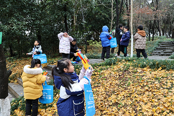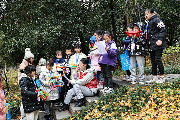 12月17日,在植物园内成功开展了第一次科普活动。户外活动环节,孩子们在植物园科普老师引导下,来到了植物园银杏林小广场,派森猫少儿编程教员张老师让孩子们利用乐高大颗粒积木,应用“互锁”原理,搭建相机取景框,并用自己的创意取景框观察身边的植物,体验不一样的自然观察乐趣。