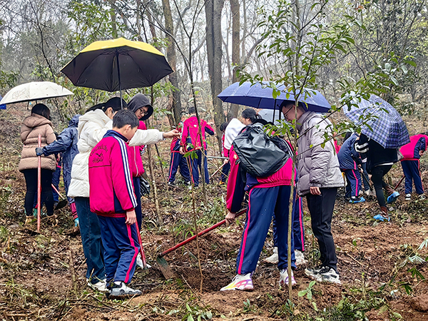 雨水浇灌新苗,汗水凝结希望。郴州六中师生以实际行动诠释了“绿水青山就是金山银山”的生态理念。未来,这片承载着家校深情的“成长林”,必将与学子共同茁壮,见证绿色梦想的绽放。