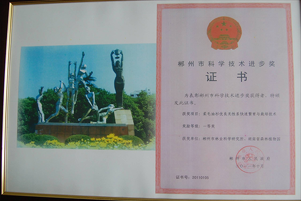 柔毛油杉优良无性系快速繁育栽培技术获奖证书